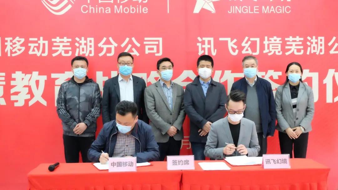 鏡湖區(qū)副區(qū)長束曉偉及政府領(lǐng)導、相關(guān)單位負責人,訊飛幻境政企事業(yè)部執(zhí)行總裁李寧、中國移動蕪湖分公司總經(jīng)理楊震等出席并見證簽約儀式,共同為雙方“智慧教育合作基地”揭牌。