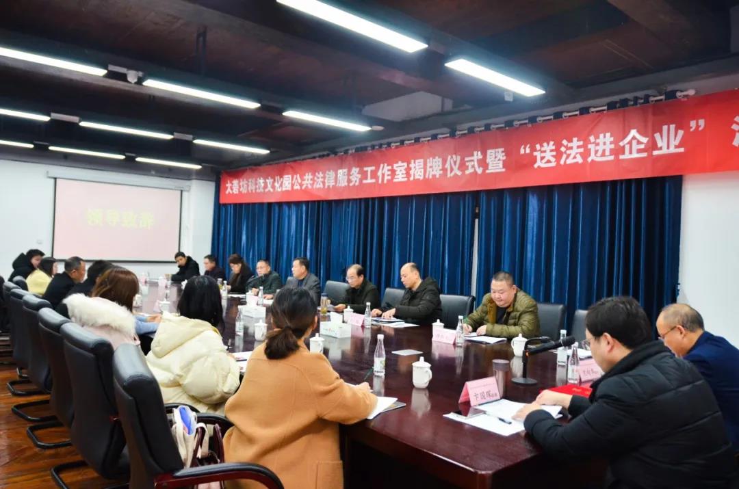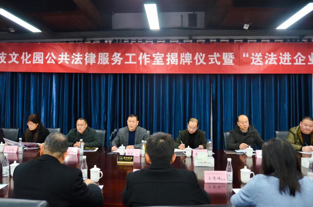 12月11日,大礱坊科技文化園公共法律服務(wù)工作室揭牌儀式暨“送法進企業(yè)”活動在園開展,區(qū)司法局、區(qū)委政法委、區(qū)法院、區(qū)檢察院、區(qū)工商聯(lián)、區(qū)經(jīng)信局、區(qū)委常委、政法委書記魏峰及各成員單位、園區(qū)負責(zé)人、企業(yè)代表等50余人出席活動。